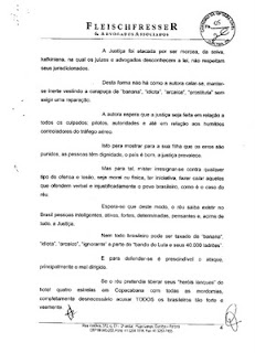 She hopes that in this way, the defendant will know that there exist in Brazil people who are intelligent, active, strong, determined, thinking and, above all, the Courts.