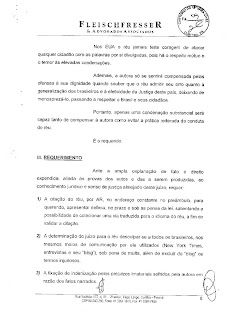 - The determination by the judge that the defendant apologize to all Brazilians, in the same means of communication used by him (New York Times, interviews and his “blog”), under penalty of fine, as well as removing the injurious terms from his blog.